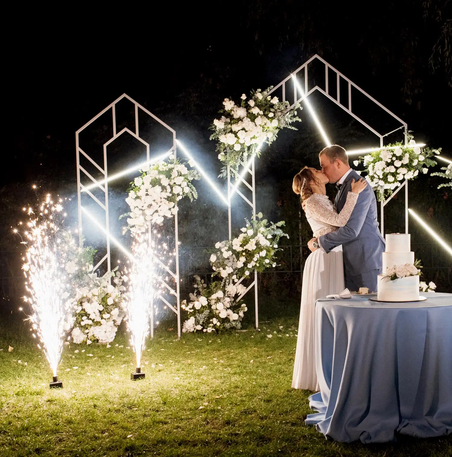 Cold spark displays bring a wow-factor to your celebration — creating safe, smokeless bursts of sparkling light that add drama to your entrance, first dance, or grand finale. Indoor or outdoor, these stunning effects are completely safe, fully controllable, and guaranteed to light up your photos and your guests’ reactions.